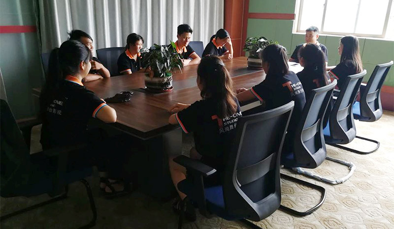 这是工厂的会议室,每个星期一早上我们都会举行例会。会议上安排接下来一个星期的任务,还有总结上周的工作情况。这能使每个员工了解到自己工作中的不足以及做的好的地方。使员工一点一滴的不断进步。