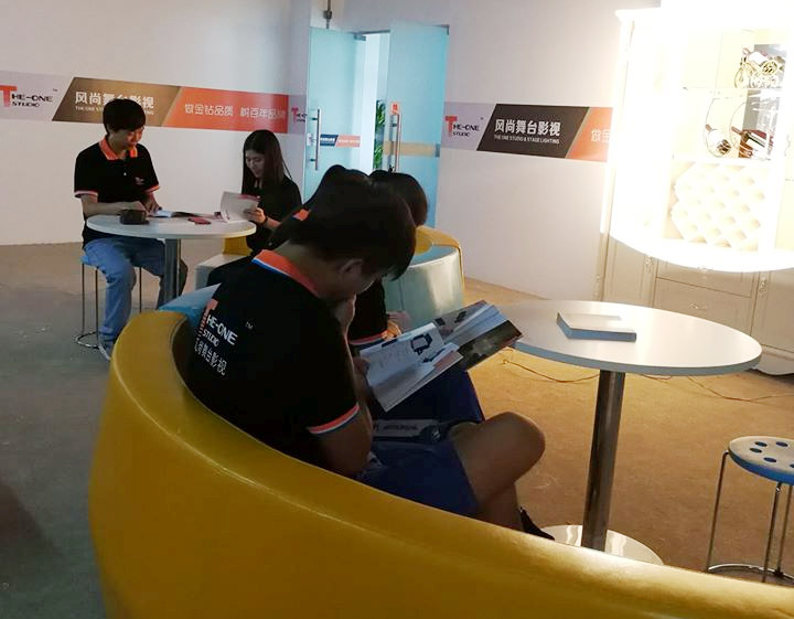 这是风尚的私人定制KTV,也是员工娱乐好去处。下班或者休息日,员工都可以来到我们KTV室一展歌喉,释放工作压力。客户参观完工厂,我们也会带客户来喝喝茶,聊聊人生。增进双方感情。这就是风尚舞台影视,拥有欢乐氛围的大家庭。